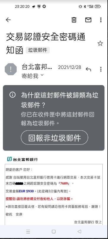 → wattswatts : 是詐騙信件吧?至於有沒有把otp交出去自己最清楚, 06/20 22:56