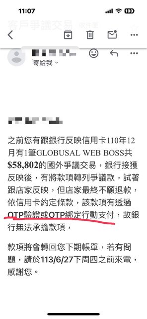 → lyhorcish : 信中寫款項有透過OTP驗證 06/20 22:06