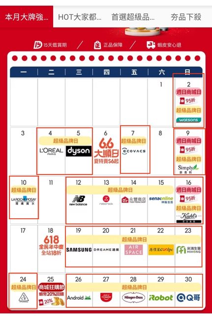 推 lowhand : 超級品牌日每天品牌不一樣 只有當天活動的品牌才有 06/23 04:29