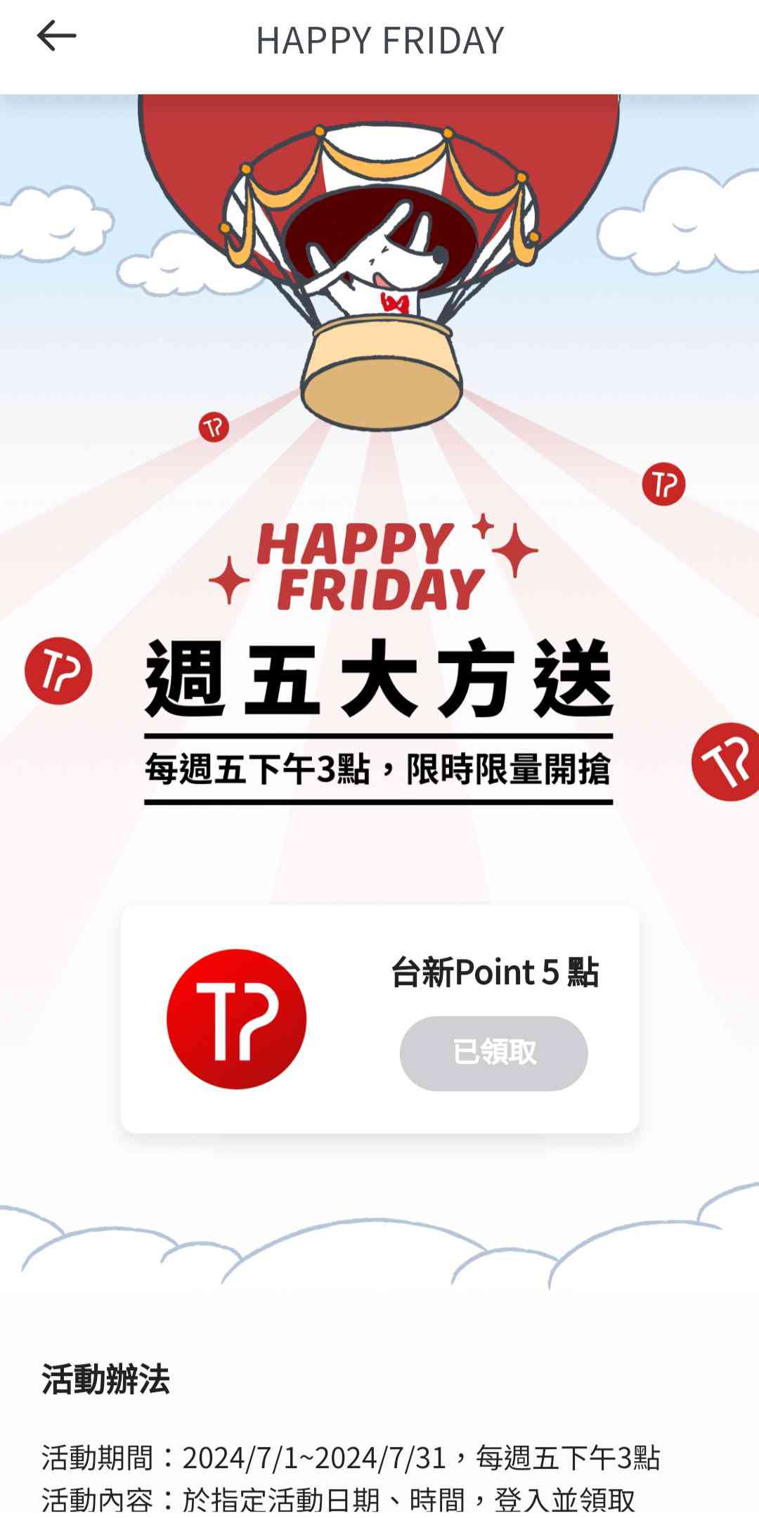 推 thedayidie : 今天richart life有happy fri活動下午三點可以登入 07/05 12:23