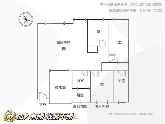 * 格局 : 3房2廳2衛1陽台