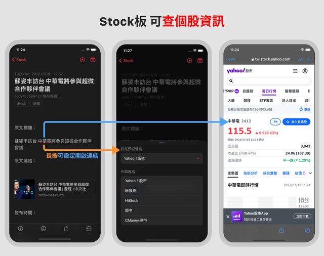 「長按」可以設定開啟的連結