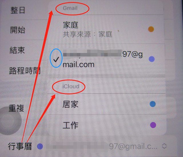 A(公務手機)的日曆行程,如果有標記選icloud就會同步到和B(個人手機)