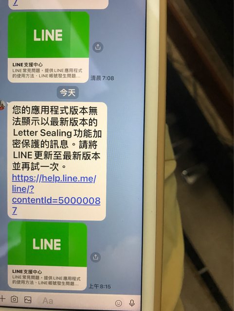 最近不知道為什麼 他的line某些人訊息都會跑出無法顯示letter sealing