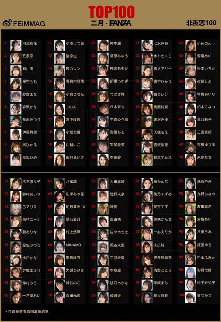 標題[情報] 2月 AV女優銷售排行1~100