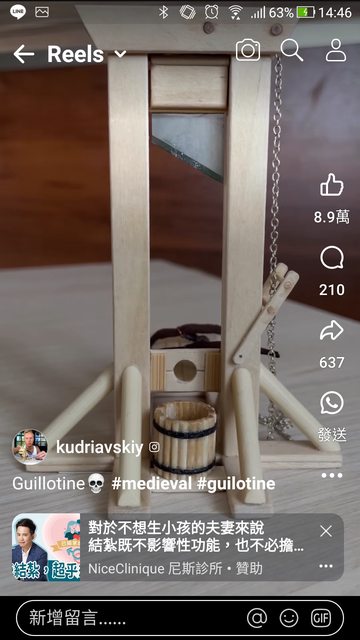 剛剛無聊看fb,看到斷頭台模型影片,影片本身沒什麼特別,但是配上下面的廣告非常有趣