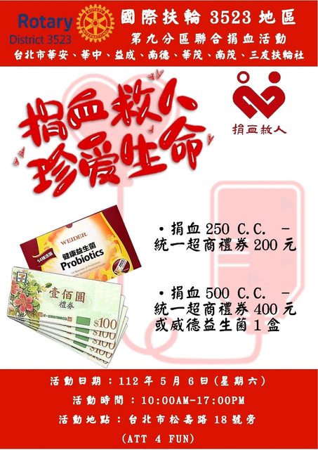 主辦單位:國際扶輪3523地區第九分區聯合社服捐血活動