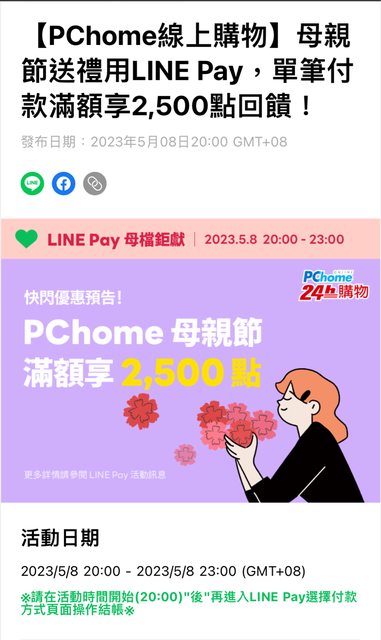 → pikachulai: LINEPAY官帳有額滿公告可以查 210.71.217.243 05/08 20:13