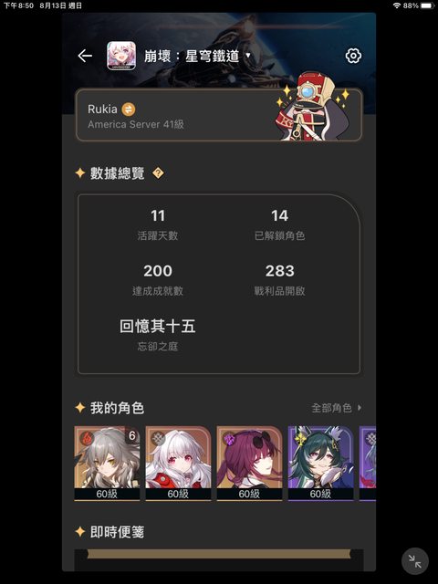 抽卡週期也是很漫長 之後可能還是試著把其他角色拉上來看看能推多少混沌回憶