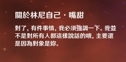 林尼寶貝<3 雖然他有陰暗的過去 跟旅行者敵對的立場 雖然他對旅行者甜言蜜語 欺騙跟隱瞞事實 但是從一開始他接近我們就沒有任何目的跟算計 他是以「林尼」這個身分與我們相處 他最怕的就是失去旅行者的信任 對他一個滿身秘密 在陰暗的角落掙扎求生的人 願意對旅行者表露真心 他真的超愛我== 還很會撒嬌求關注== 不說了我愛他 話說不知道是不是我腦子有問題 感覺男角 ex.魈 散兵 林尼 表達偏愛都滿明顯的 女角可能也有 但我都把她們當好朋友 還有其他人對旅行者表達好感的嗎 如果是我理解錯誤 是我的戀愛腦發作 抱歉 -- ※ 發信站: 批踢踢實業坊(pttbestweb.org.tw), 來自: 101.10.109.239 (臺灣) ※ 文章網址: https://pttbestweb.org.tw/miHoYo/M.1692432662.A.DB3