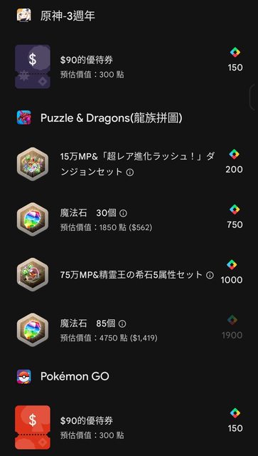 → w22519352: 150點可以換原神90元折價券誒 10/13 10:03