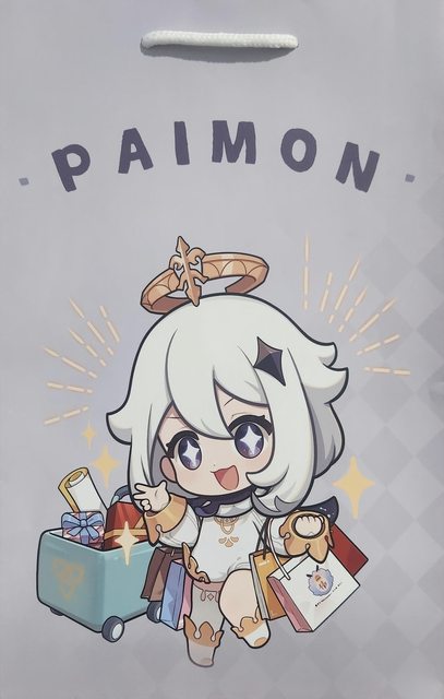 購買周邊送的限量派蒙紙袋和派蒙扇子