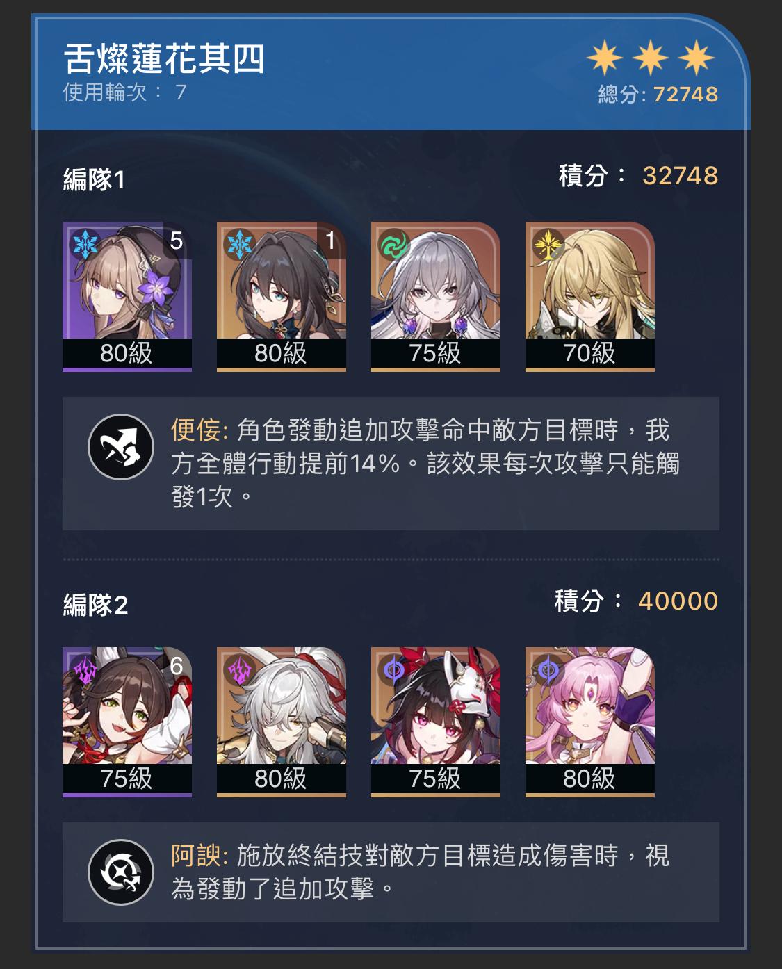 thund: 光錐帶克拉拉專武 滿等 行跡都點到8等 遺器穿減傷那套 03/07 09:39