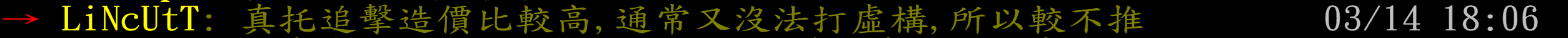 LiNcUtT: 我自己有0+1真&托,很清楚真托追擊要投多少下去才能打 03/14 18:30