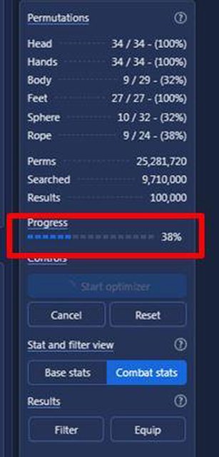 因為會考慮全部排列組合相乘,裝備越多算越久,我載入30組裝備大概算了3分鐘