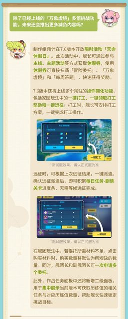 1) 7.6新增「休假券」,從主線和活動中獲取,可以精簡冒險委託、萬象虛境、每週答題
