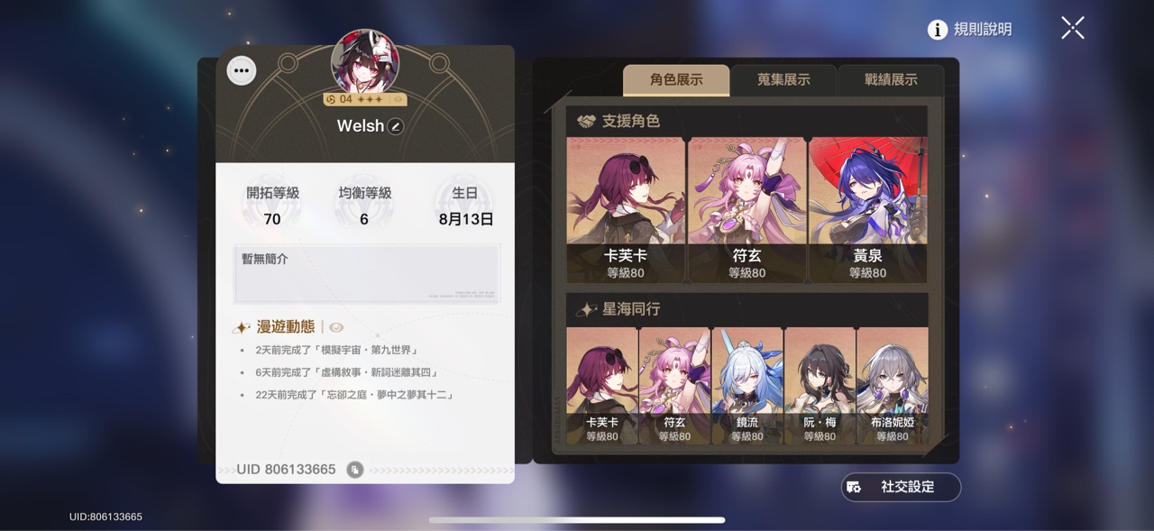 → emily1219: 養成方面如果現有的幾位角色刷不了行跡素材 可以去刷06/08 12:15