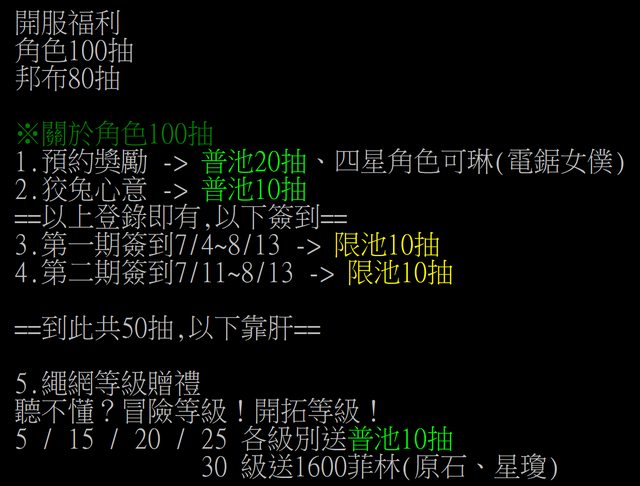→ skyofme: 要自己另外弄得獎勵只有兩個,一個是開服前瞻的序號 07/03 08:45