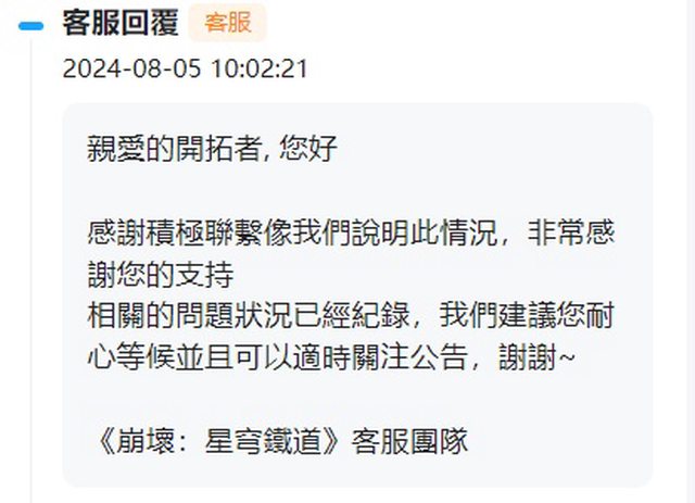 最後回覆也是已紀錄,待後續公告