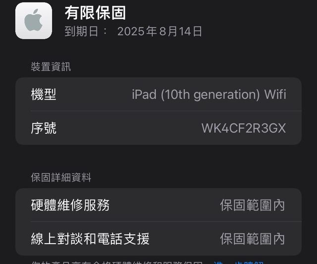 欲售物品:iPad 10 64GB wifi 藍