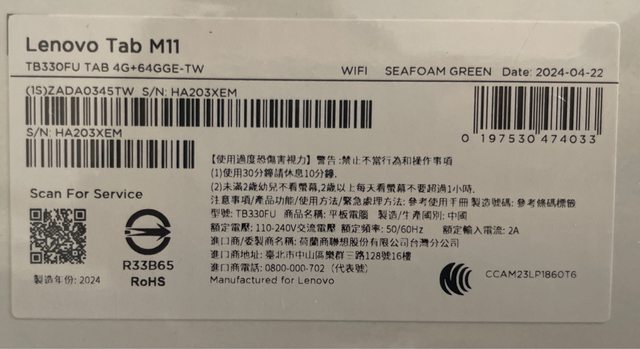 欲售物品:Lenovo 聯想 M11 4G/64G wifi
