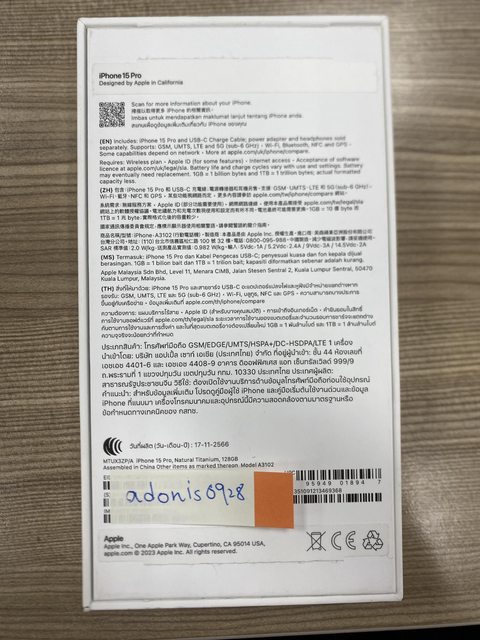 欲售物品:iPhone 15 Pro 128G