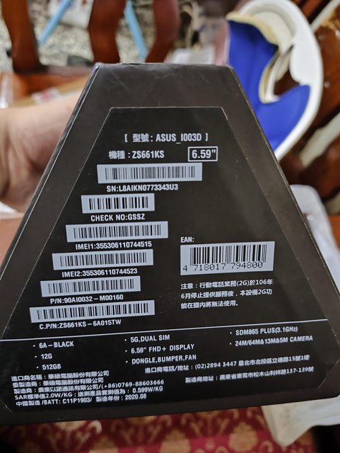 欲售物品:ASUS ROG Phone 3 ZS661KS (12GB/512GB) 黑色