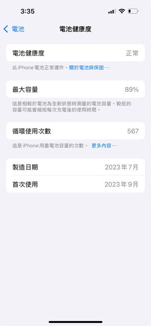 電池健康度89% / 循環次數567