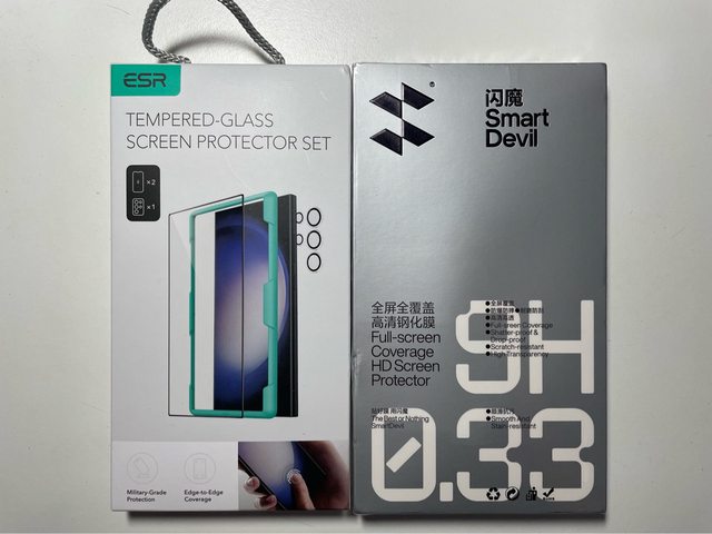螢幕上有於原廠更換螢幕未拆的膜,一併附贈之前買的閃膜保護貼及ESR保護貼,背面的