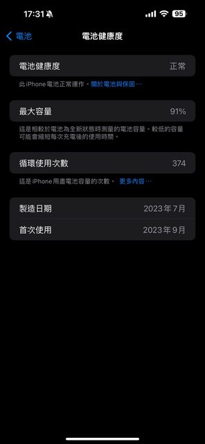 電池健康度91% 循環374次