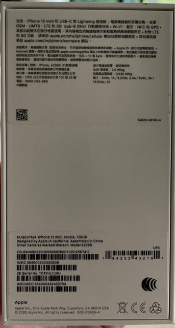 欲售物品: iphone 12 mini 128G 紫 物品狀況:電池最大容量84% 購買來源:傑昇通訊行 NCC 認證:CCAI204G0430T0 盒裝內含:iphone 12 mini