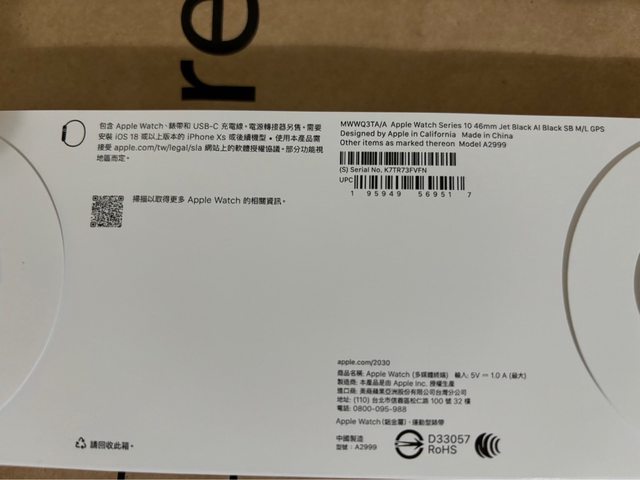 欲售物品:Apple Watch 10 46mm黑色