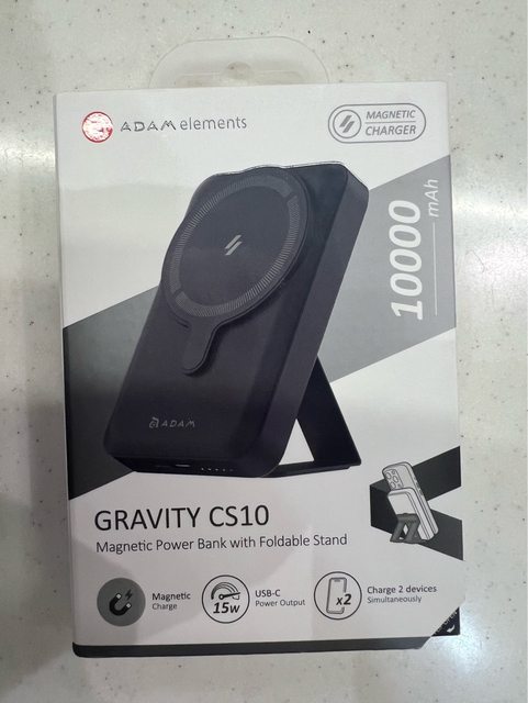欲售物品:ADAM 亞果元素 GRAVITY CS10 行動電源 磁吸 無線充電 支架式 USB-C 黑色