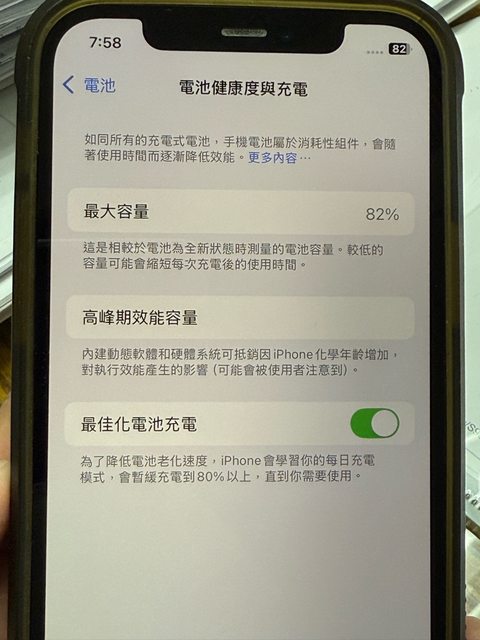 物品狀況:二手,電池健康度82%,無維修紀錄,有保護殼,機身良好,外觀無損,有正