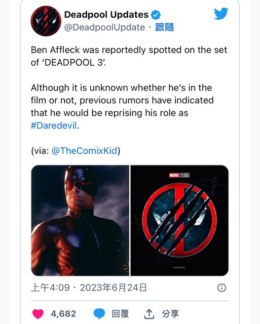 推 mayukii : 以前很喜歡他演的夜魔俠 06/26 20:16