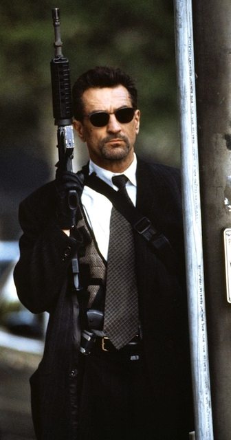 勞勃狄尼洛戴著墨鏡背著一把步槍