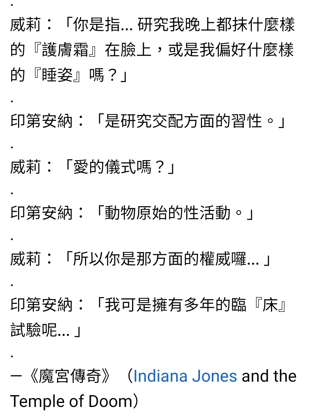 推 ntuhhint : 印地在第二集魔宮傳奇和女主角充滿調情的對話,在 07/04 21:58