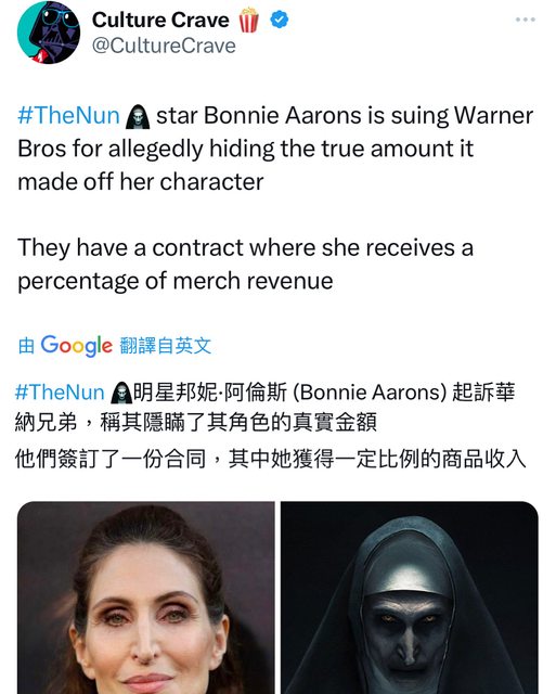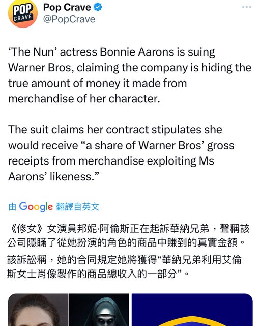 標題[新聞] 分潤不如預期 《鬼修女》演員控告華納