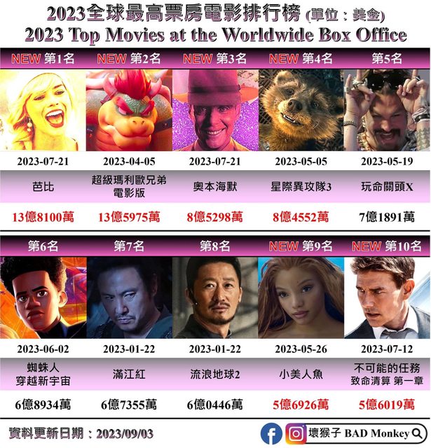 → tabrisPTT : 芭比上映前誰知道有這票房? 09/05 09:40