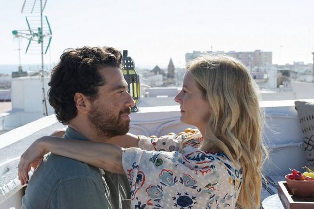 這一切都由來自德東的女主角 Pia帶觀眾遊覽見識了一遍、本片異國配樂與動感攝影在系列中也算一等一、尤其安達魯西亞大地光開車穿越山巒農園就是陽光普照、陽光灑在 Cádiz 白城建築就是明暗對比的地中海風情!不過開場第一鏡 Pia搭計程車竟行駛左側道路還大講英語:原來第一站要去的是英國領土「地中海門戶」直布羅陀、煞有其事地學習《愛在黎明破曉時》與異國男子在這「天涯海角」的燈塔相會!只是我們這輩看過《愛在》三部曲的都知這種約見有多靠不住:Pia 半年前在機場邂逅紐西蘭男子 John 約好今天來相會、但她班機延誤遲到四小時黯然撲個空!