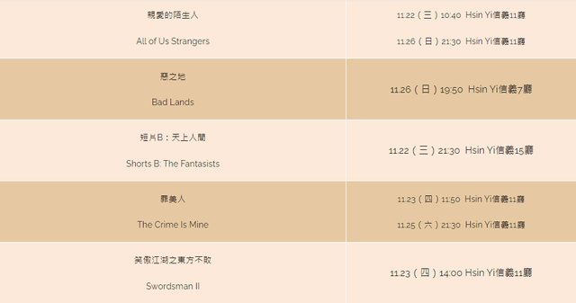 場與加演場將於本週六(11/4)下午一點起,於官網售票系統以及金馬影展展前服務台開