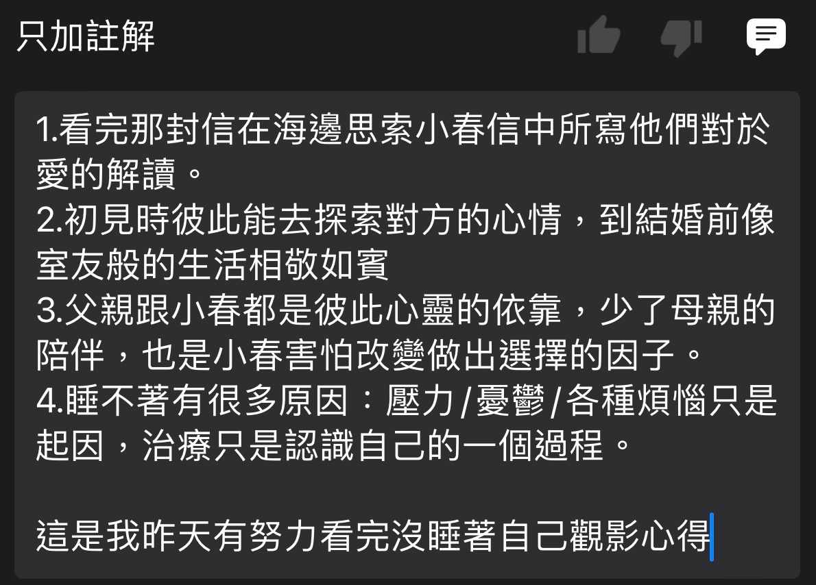 推 lovebz : 小春應該最後是想懺悔 而且她的懺悔拯救了另一段幸 07/30 00:05