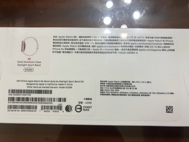 品牌名稱:Apple Watch SE (第一代)LTE版