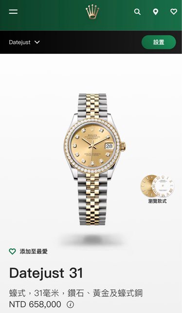 手錶型號: DateJust 278383 31mm 鑽圈 十鑽 五珠
