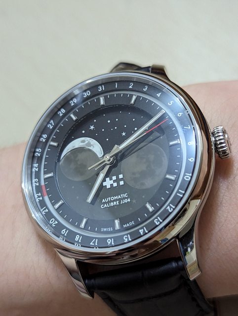 因為平日上班需要看日期,雖然沒有一般的日期窗,但換成面盤式的不破壞月相畫面我覺