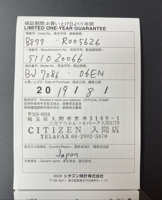 附件:盒子、日文保卡(2019年日本旅遊購買)
