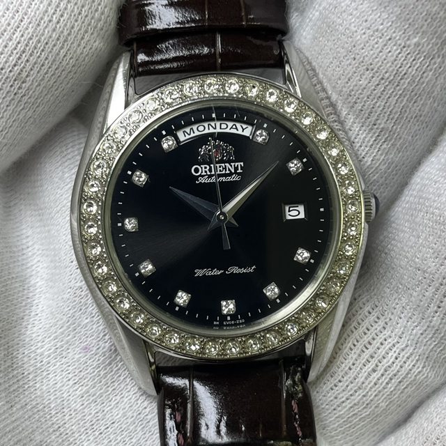 ORIENT東方DAY-DATE 黑面水鑽圈 自動上鍊機械錶
