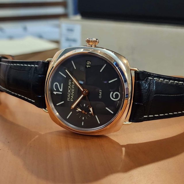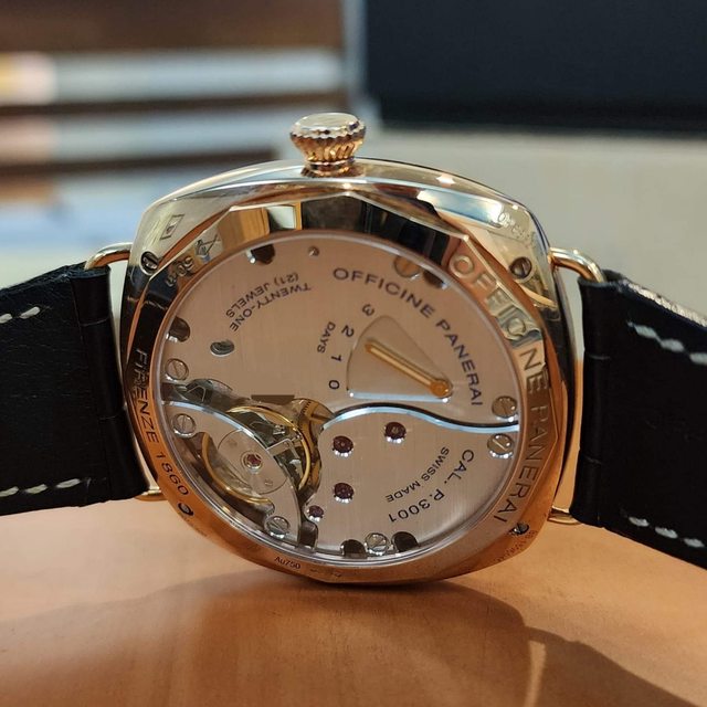《售》:PANERAI 沛納海 PAM421 18k玫瑰金材質 GMT雙時區 動力顯示於錶背 小秒針 三