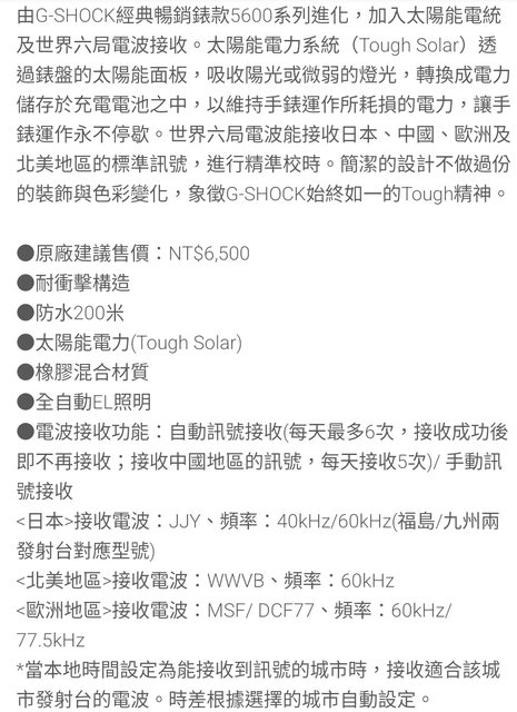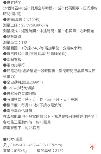 物品描述:電波校時,太陽能動力儲存