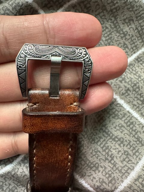 目前更換為沃坦皮革錶帶以及有造型的錶扣